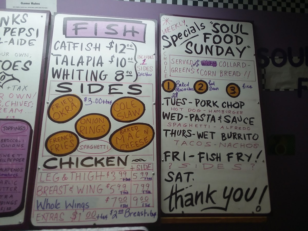 The drink menu is equally delightful, offering refreshing choices like Kool-Aid for just $2.00 and bottled water at $1.00, keeping you quenched as you indulge.